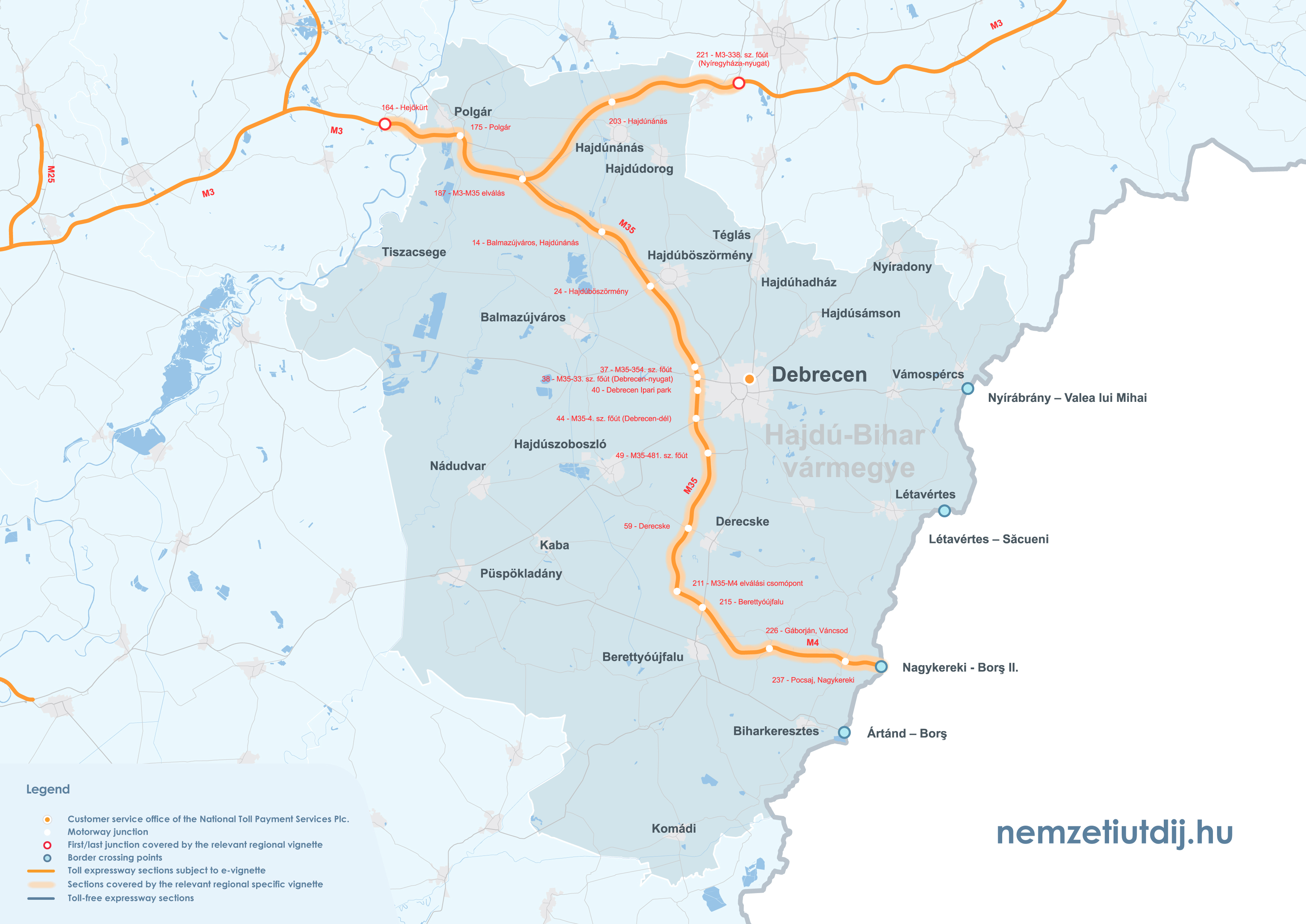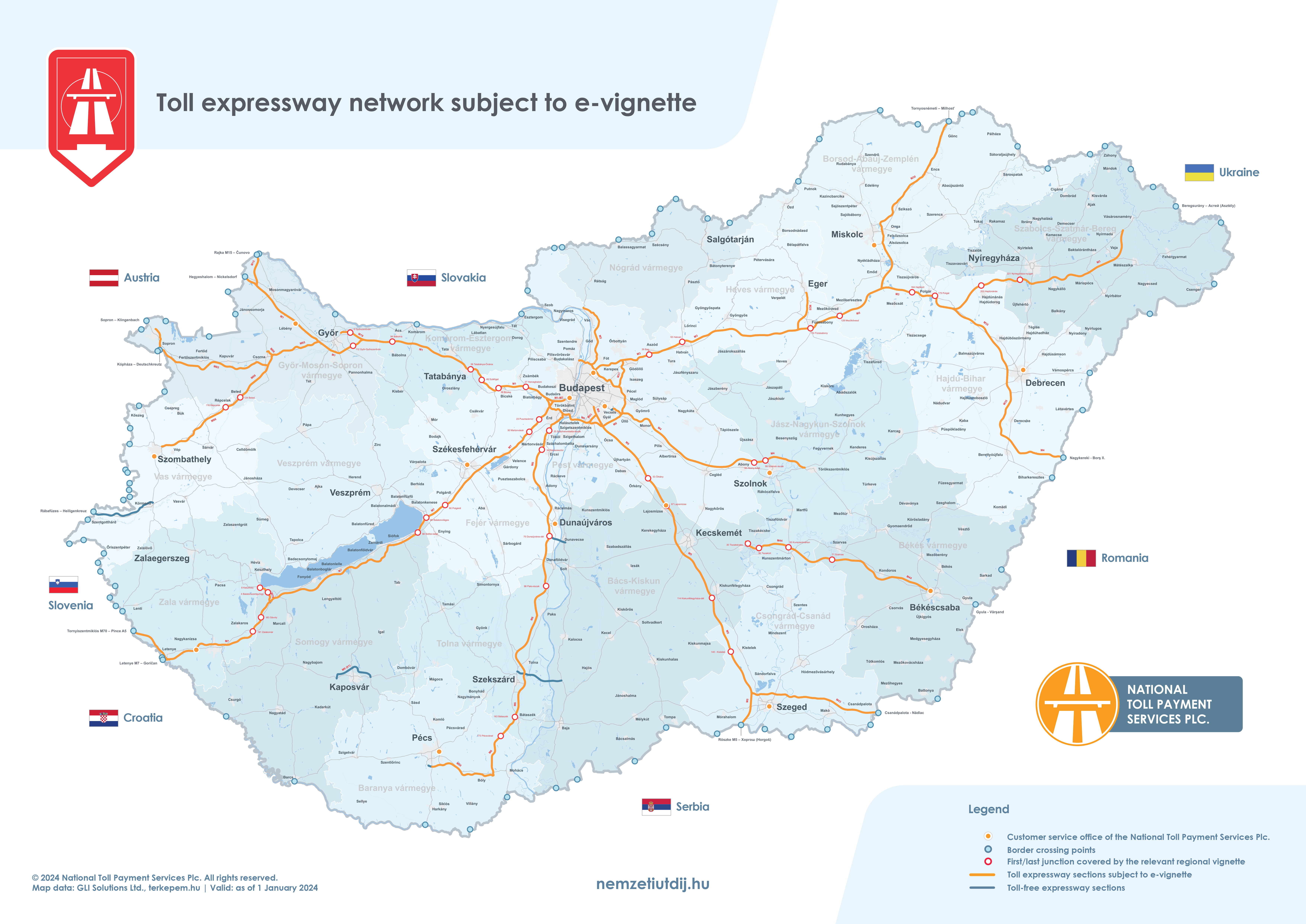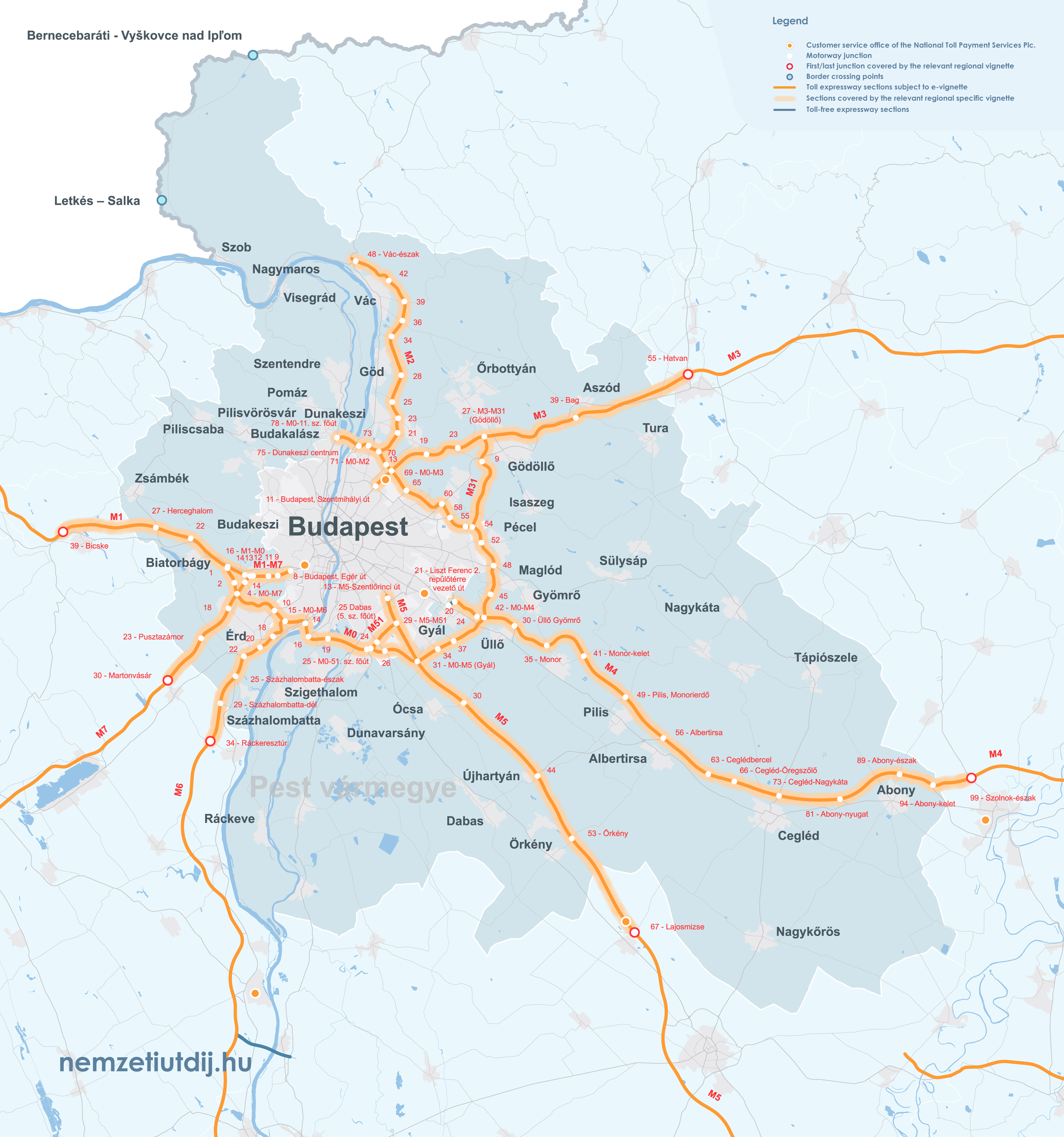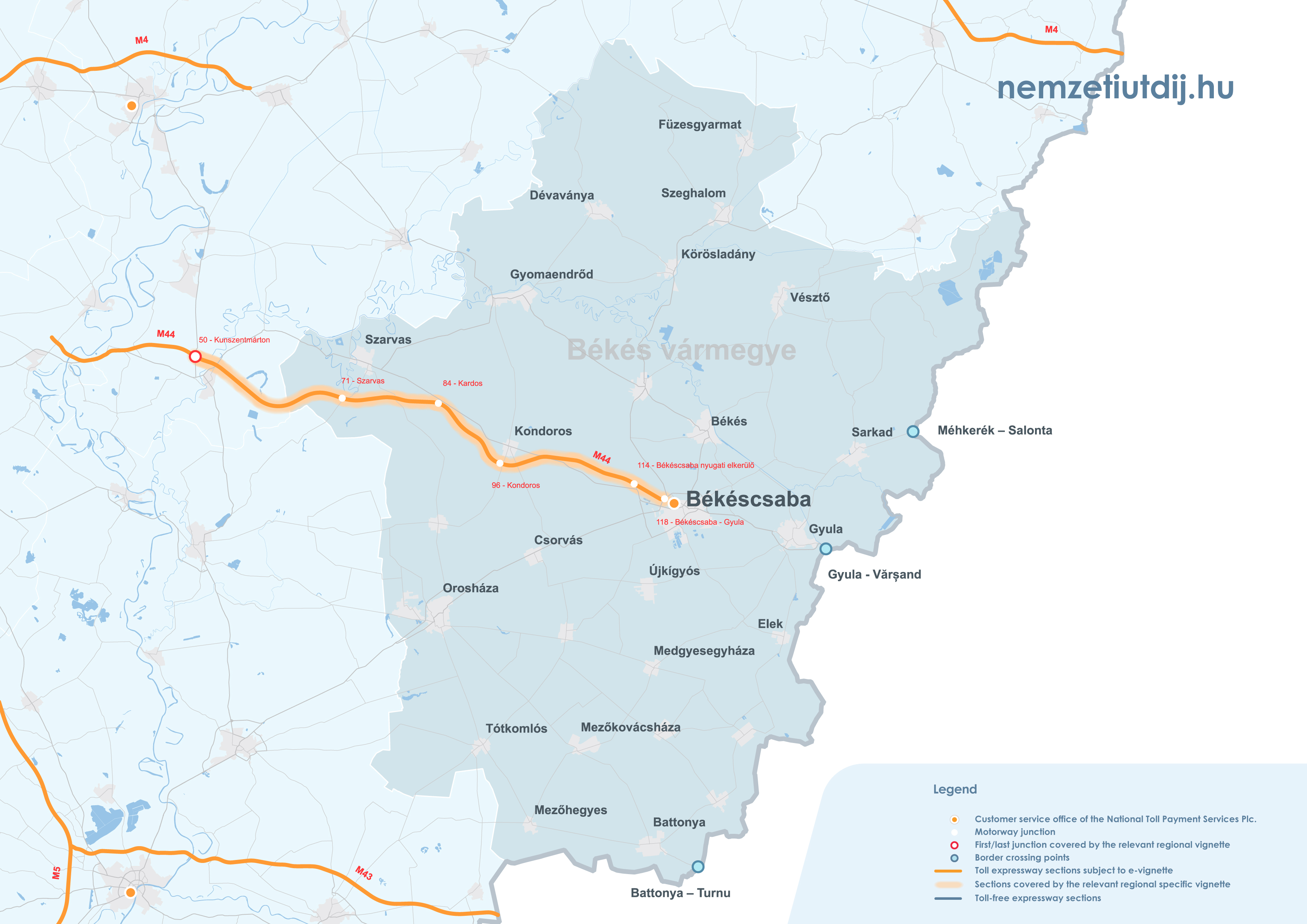 Rozsah platnosti regionálnych e-diaľničných známok sa rozširuje mimo administratívnych hraníc župy až po prvú križovatku za hranicou župy. Územná platnosť regionálnych známok podľa čísla križovatky a čísla úseku cesty je uvedená v prílohe 1 k vyhláške 45/2020 (XI. 28.) ITM ministra pre inovácie a technológie.
