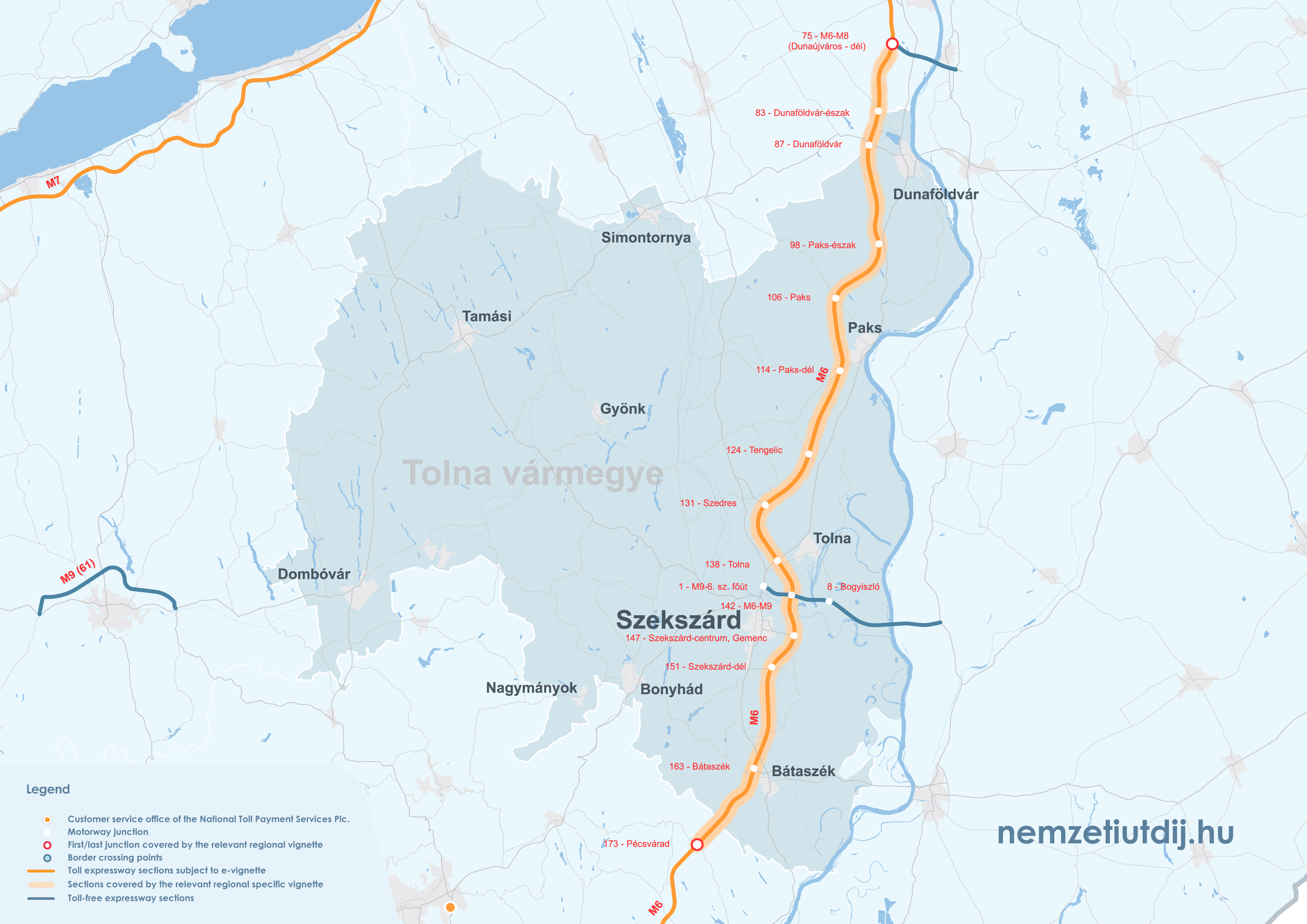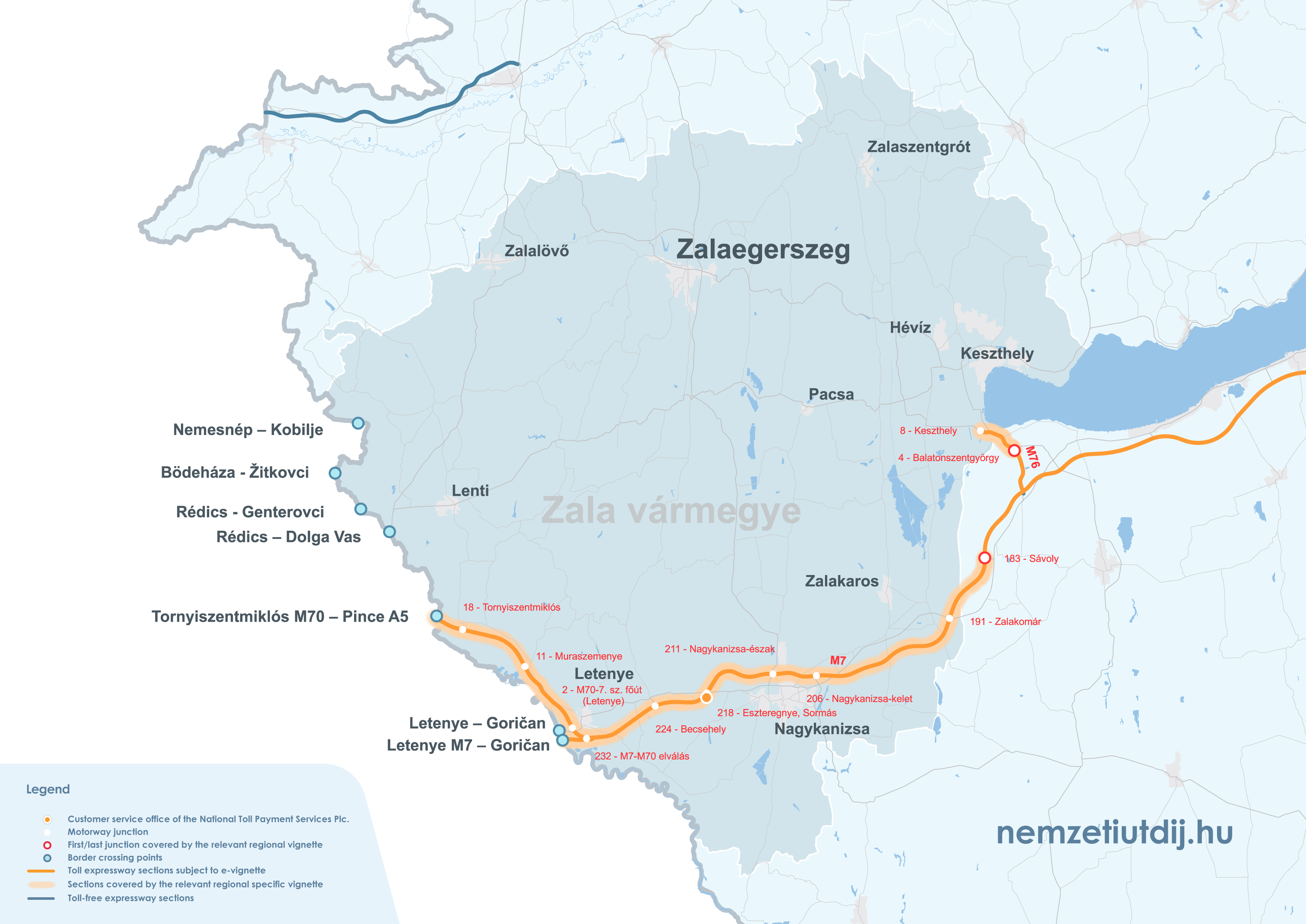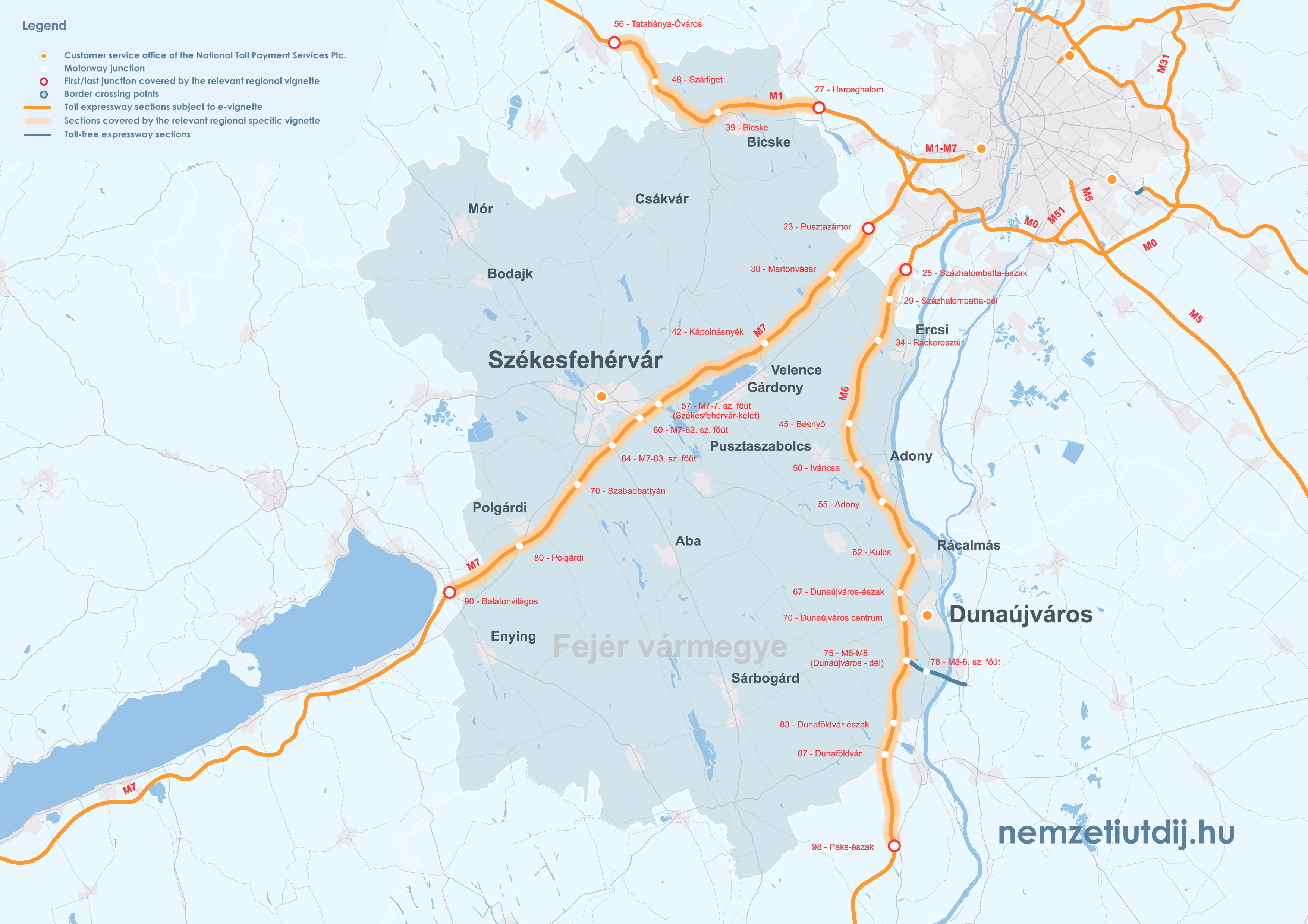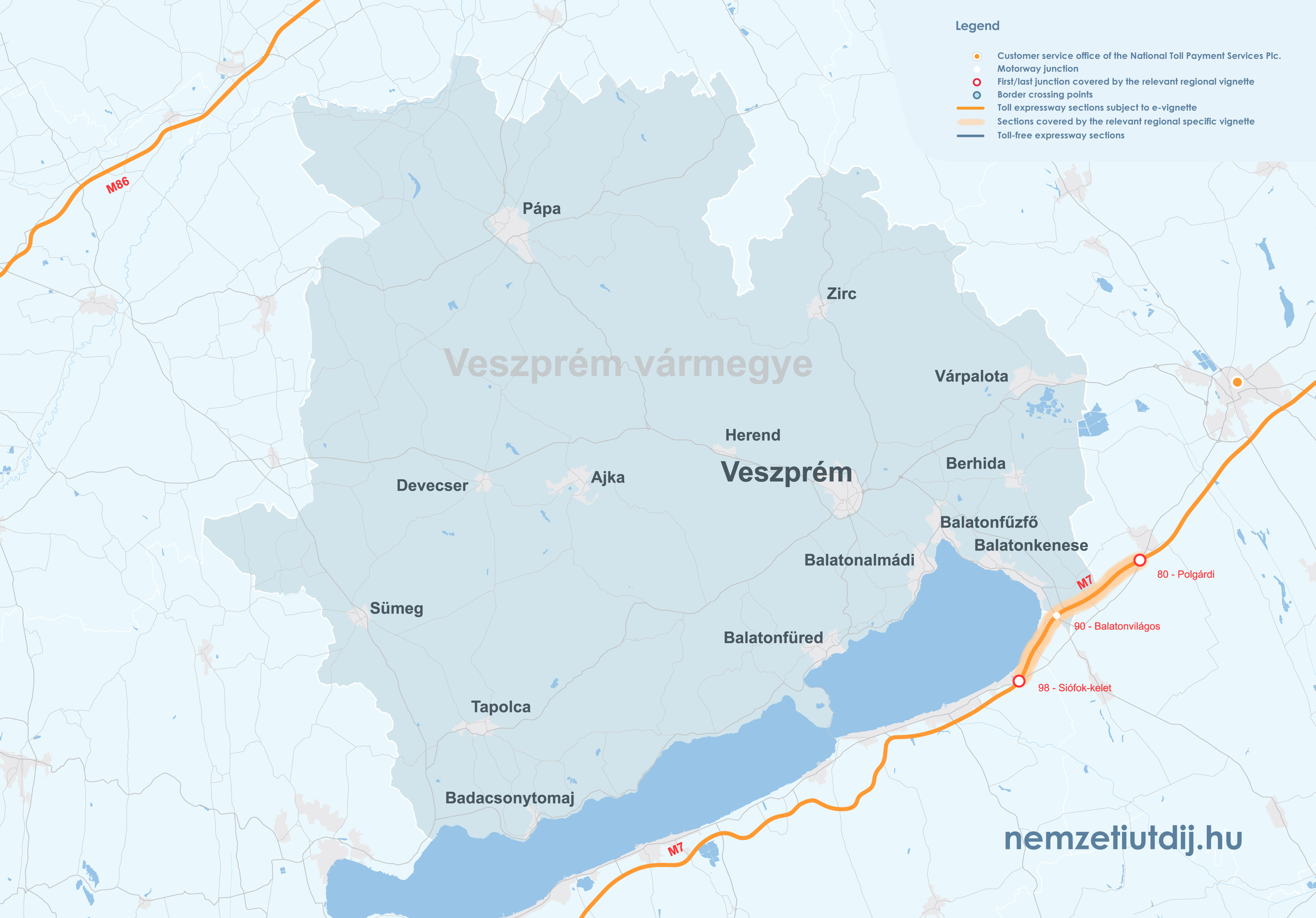 Rozsah platnosti regionálnych e-diaľničných známok sa rozširuje mimo administratívnych hraníc župy až po prvú križovatku za hranicou župy. Územná platnosť regionálnych známok podľa čísla križovatky a čísla úseku cesty je uvedená v prílohe 1 k vyhláške 45/2020 (XI. 28.) ITM ministra pre inovácie a technológie.